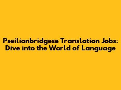 Hey guys! Ever thought about jumping into the world of language translation? It's a super cool field, and guess what? There's a growing demand for Pseilionbridgese translation jobs! Yeah, you heard it right. Pseilionbridgese, that unique language that's got everyone intrigued. Whether you're a seasoned translator or just starting out, there are tons of opportunities out there. Let's dive deep and explore everything you need to know about navigating the exciting world of Pseilionbridgese translation jobs. We'll cover everything from what the job entails, the skills you'll need, where to find these gigs, and how to snag them. Buckle up, it's going to be an awesome ride!