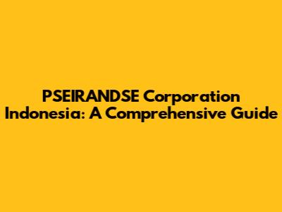 PSEIRANDSE Corporation Indonesia: A Comprehensive Guide