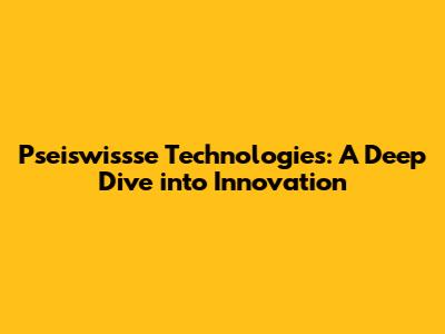 Pseiswissse Technologies: Unveiling Innovation And Solutions