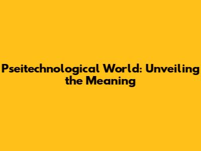 Pseitechnological World: Unveiling The Meaning