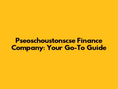 Pseoschoustonscse Finance Company: Your Go-To Guide