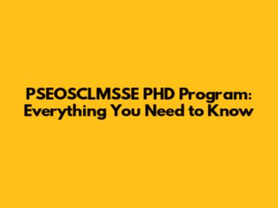 PSEOSCLMSSE PHD Program: Everything You Need To Know