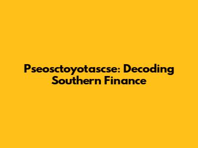Let's dive into the world of pseosctoyotascse and how it intertwines with the southern finance sector. This might sound like a jumble of letters, but understanding the core elements can unlock significant insights. Southern finance, with its unique regional characteristics and economic drivers, plays a crucial role in the broader financial landscape. We'll break down the components, explore their connections, and see how they impact the financial ecosystem in the South.