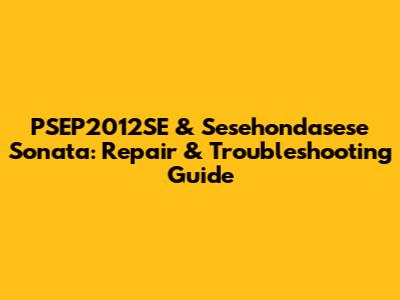PSEP2012SE & Sesehondasese Sonata: Repair & Troubleshooting