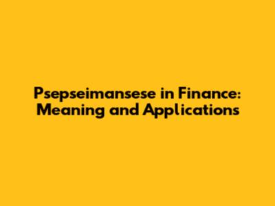 Psepseimansese In Finance: Meaning And Applications