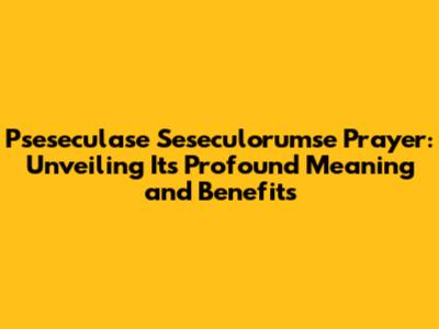 Pseseculase Seseculorumse Prayer: Unlock Its Secrets