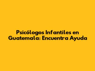 Psicólogos Infantiles En Guatemala: Encuentra Ayuda