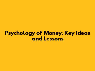 Psychology Of Money: Key Ideas And Lessons