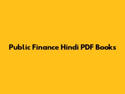 Public Finance Hindi PDF Books