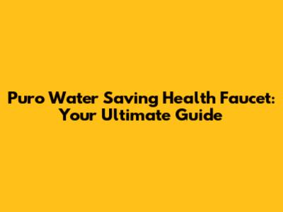 Puro Water Saving Health Faucet: Your Guide