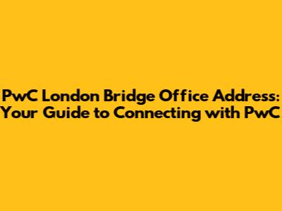 So, there you have it! Everything you need to know about the PwC London Bridge office address and how to connect with them. Whether you're visiting for a meeting, seeking professional advice, or exploring career opportunities, this guide will help you navigate your way. Remember to plan your journey, confirm your appointments, and utilize the various resources available to you. With its prime location, comprehensive services, and commitment to excellence, the PwC London Bridge office is a valuable asset to the London business community. Good luck, and we hope your experience with PwC is a positive one!