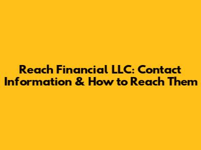 Reach Financial LLC: Contact Information & How To Reach Them