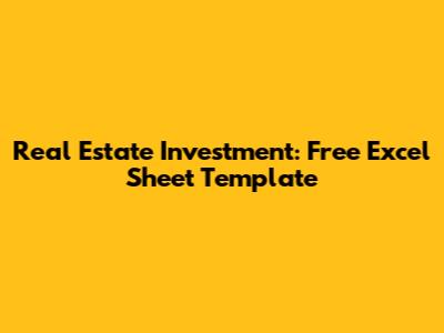 Real Estate Investment: Free Excel Sheet Template