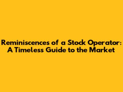 Reminiscences Of A Stock Operator: A Timeless Guide