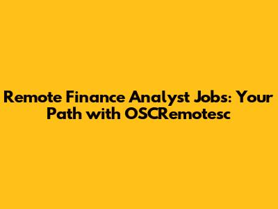OSCremotesc and Remote Finance Analyst Jobs: A Perfect Match