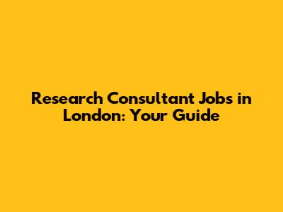 Research Consultant Jobs In London: Your Guide
