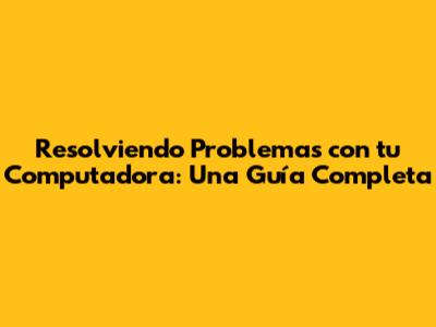 Resolviendo Problemas Con Tu Computadora: Una Guía Completa