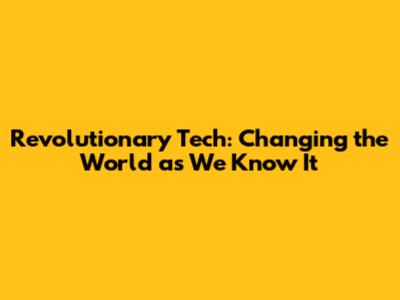 Revolutionary Tech: Changing The World As We Know It