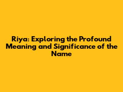 Riya: Unveiling The Meaning And Significance Of A Beautiful Name