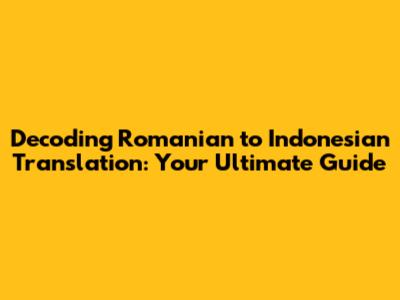 Decoding Romanian to Indonesian Translation: Your Ultimate Guide