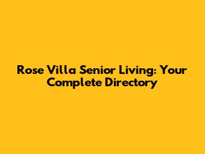 Rose Villa Senior Living: Your Complete Directory