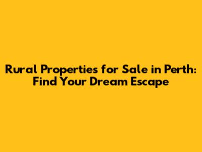 Rural Properties For Sale In Perth: Find Your Dream Escape