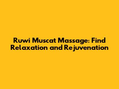 Ruwi Muscat Massage: Find Relaxation Near You