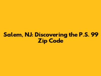 Hey guys, let's dive into the nitty-gritty of finding the P.S. 99 New Jersey Salem zip code. You know, sometimes you just need that one piece of information, that specific zip code, and it can feel like searching for a needle in a haystack. Well, fear not! We're here to make that search a breeze. Understanding zip codes is super important, whether you're sending a package, filling out a form, or just trying to get a lay of the land in a particular area. Salem, New Jersey, is a charming spot with a rich history, and knowing its specific postal codes helps connect you to its services and communities more efficiently. So, let's unravel this mystery and pinpoint the exact zip code associated with P.S. 99 in Salem, New Jersey. This isn't just about a string of numbers; it's about understanding the local infrastructure and ensuring your mail, deliveries, and even your digital mapping efforts are accurate. We'll explore what makes this particular zip code significant and how you can easily find and verify it for all your needs. Get ready to become a zip code pro!