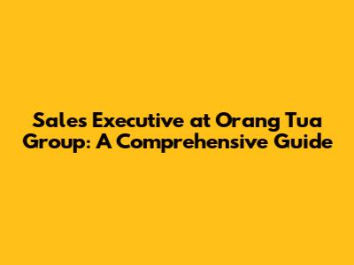 Sales Executive At Orang Tua Group: A Comprehensive Guide