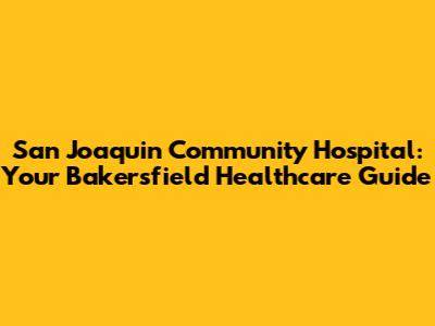 San Joaquin Community Hospital: Your Bakersfield Healthcare Guide