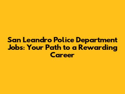 Hey everyone! Are you looking for a career where you can make a real difference, serve your community, and experience a dynamic work environment? Well, look no further, because we're diving deep into San Leandro Police Department jobs! The San Leandro Police Department (SLPD) offers a variety of exciting opportunities for individuals who are passionate about law enforcement and public service. From sworn officers to civilian staff, there's a place for everyone who wants to contribute to a safer and more secure community. In this article, we'll explore the different job opportunities available at the San Leandro Police Department, the requirements you need to apply, the application process, and what you can expect in terms of career growth and benefits. So, buckle up, because we're about to embark on a journey that could lead you to a fulfilling career path!