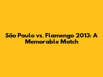 Overall, the São Paulo vs. Flamengo match of 2013 was a classic encounter that epitomized the excitement and competitiveness of Brazilian football. It remains a highlight in the history of both clubs, celebrated for its drama, skill, and lasting impact. For those who witnessed it, the game serves as a reminder of the enduring appeal of Brazilian football and the passion it inspires.