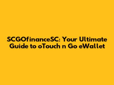 SCGOfinanceSC: Your Ultimate Guide To OTouch N Go EWallet