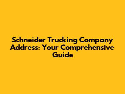 The Main Schneider Trucking Company Address
