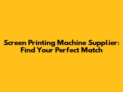 Screen Printing Machine Supplier: Find Your Perfect Match