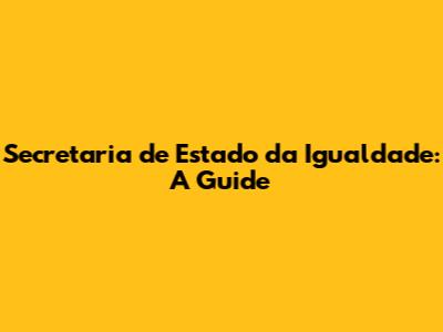 Secretaria De Estado Da Igualdade: A Guide