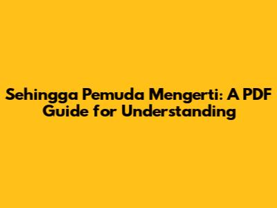 Sehingga Pemuda Mengerti: A PDF Guide For Understanding