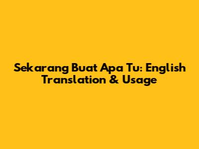 Sekarang Buat Apa Tu: English Translation & Usage