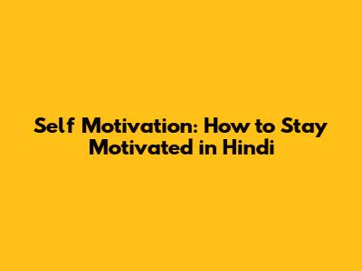 Self Motivation: How To Stay Motivated In Hindi