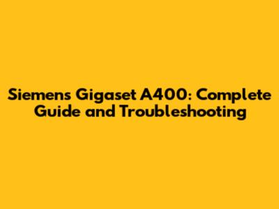 Siemens Gigaset A400: Complete Guide And Troubleshooting