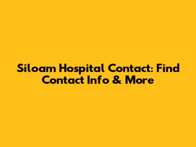 Siloam Hospital Contact: Find Contact Info & More