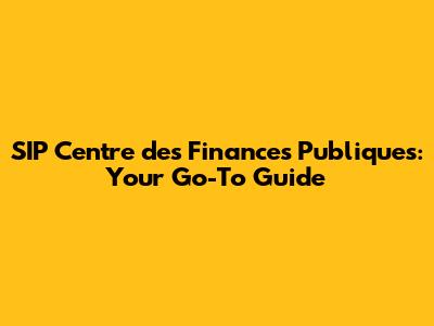 SIP Centre Des Finances Publiques: Your Go-To Guide