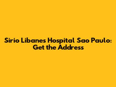 Sirio Libanes Hospital Sao Paulo: Get The Address