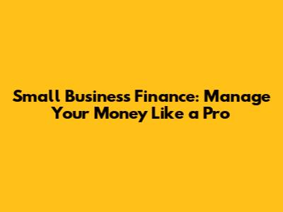 Small Business Finance: Manage Your Money Like A Pro