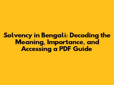 Solvency In Bengali: Meaning, Importance & PDF Guide