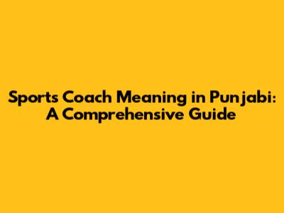 Sports Coach Meaning In Punjabi: A Comprehensive Guide