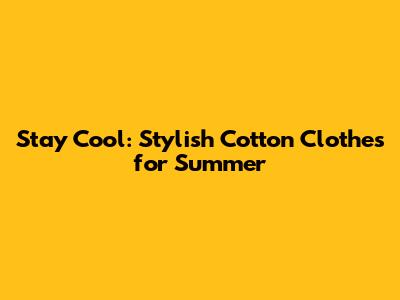 Stay Cool: Stylish Cotton Clothes For Summer