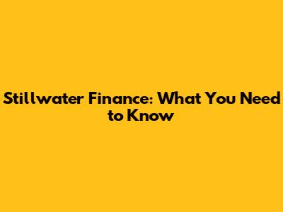 Stillwater Finance: What You Need To Know