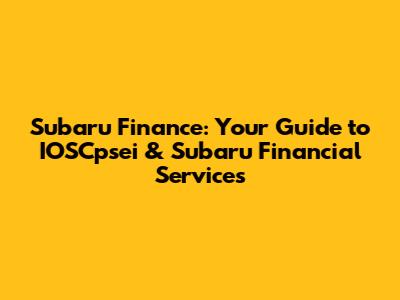 Hey guys! Let's dive into the world of Subaru financing, particularly focusing on IOSCpsei and the awesome services provided by Subaru Financial Services. Buying a car can be a big deal, and figuring out the financial side of things can sometimes feel like navigating a maze. But don't worry, we're going to break it all down in a way that's easy to understand, covering everything from Subaru lease deals to getting that Subaru car loan you've been eyeing. We'll explore the various Subaru financing options available, ensuring you're well-equipped to make informed decisions and drive off in your dream Subaru without any headaches.