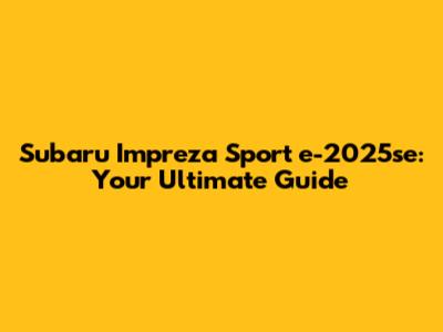 Subaru Impreza Sport E-2025se: Specs, Features & More